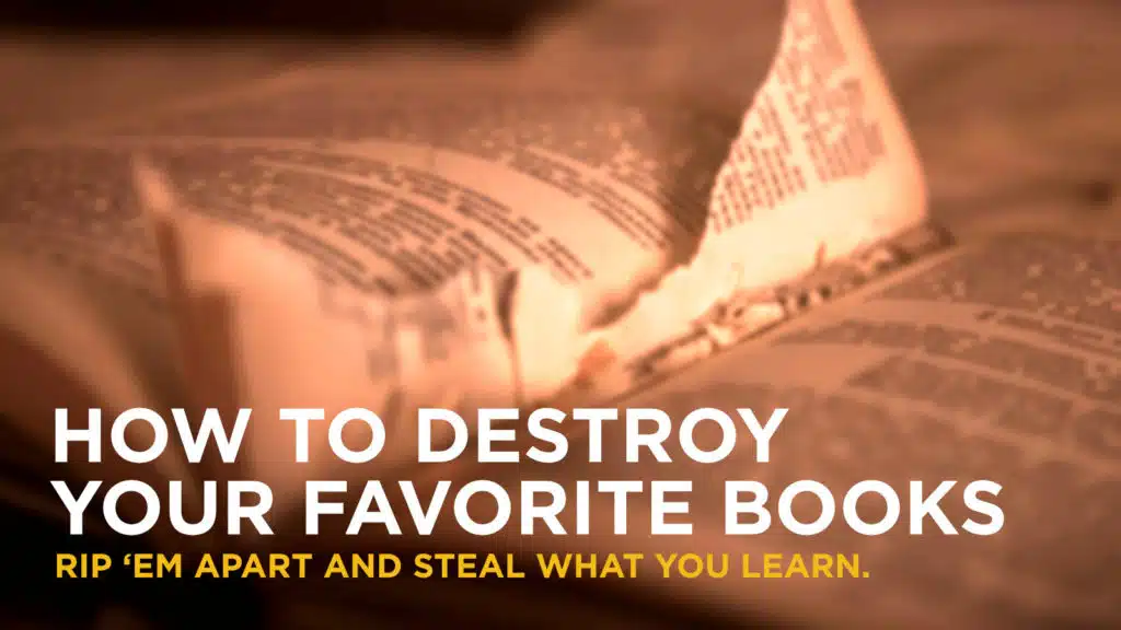 By ripping your favorite books into pieces—whether you literally slice the hardback into its three unique acts, create a spreadsheet for each plot point, or put a sticky note on every page that scares you—you have the opportunity to evaluate every element of your favorite story as an isolated, functional unit.
