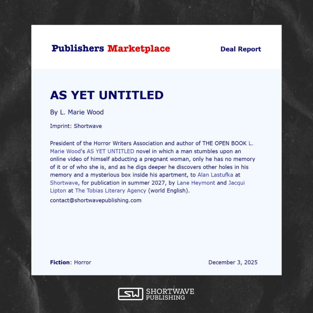 Today we are excited to announce we’ve acquired As Yet Untitled, a new novel by L. Marie Woods, President of the Horror Writers Association and author of The Open Book.