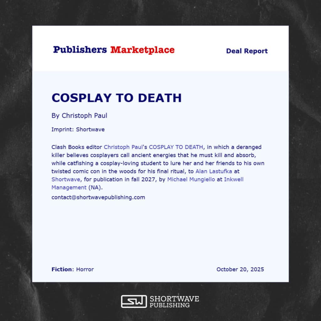 Today we are excited to announce we’ve acquired Cosplay to Death, a new slasher novel by Christoph Paul.