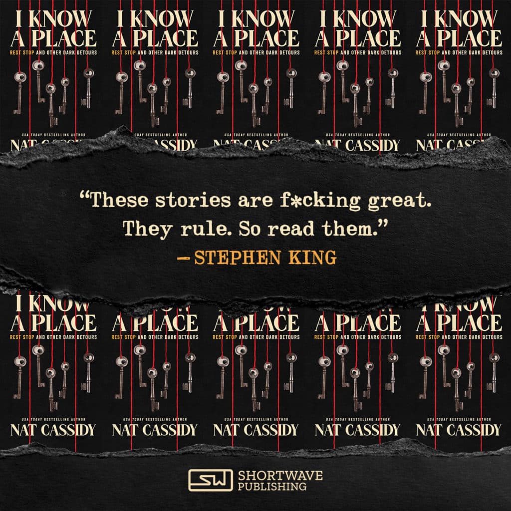 A new collection of short stories by bestselling author Nat Cassidy has received a rave review from modern horror literature’s biggest legend, Stephen King. I Know A Place is a collection of short stories that will be published by Shortwave Publishing on May 5th. The collection includes Cassidy’s novella Rest Stop, a 2024 Bram Stoker Award finalist, as well as a number of other new original stories.